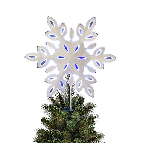 EAMBRITE 10" Hollow Snowflake Christmas Tree Topper with 6 Blue Lights and 12 Cool White Lights for Xmas Tree Decor